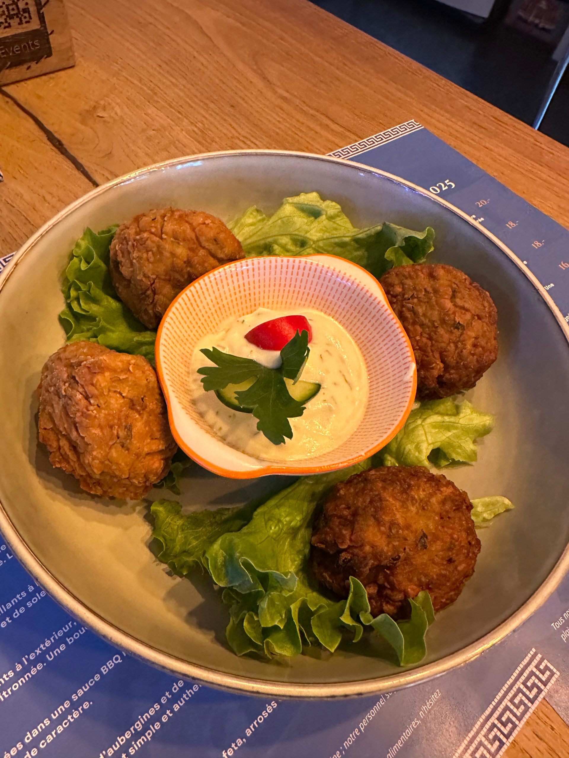 Mykonos 20.-Olives marinées, tzatziki et sauce feta servis avec pain pita chaud, pour une escapade gustative ensoleillée. Une combinaison harmonieuse qui éveille les sens et invite au voyage culinaire dans les Cyclades